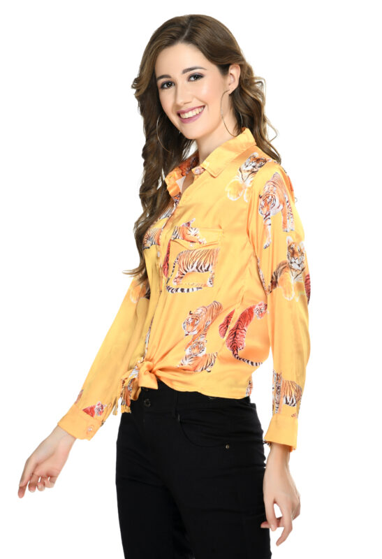 Satin Tiger Print Tie Knot Shirt