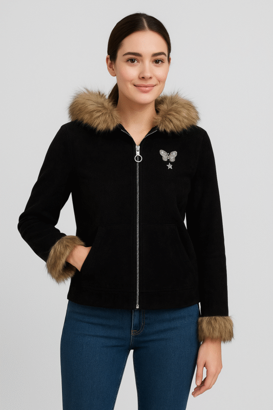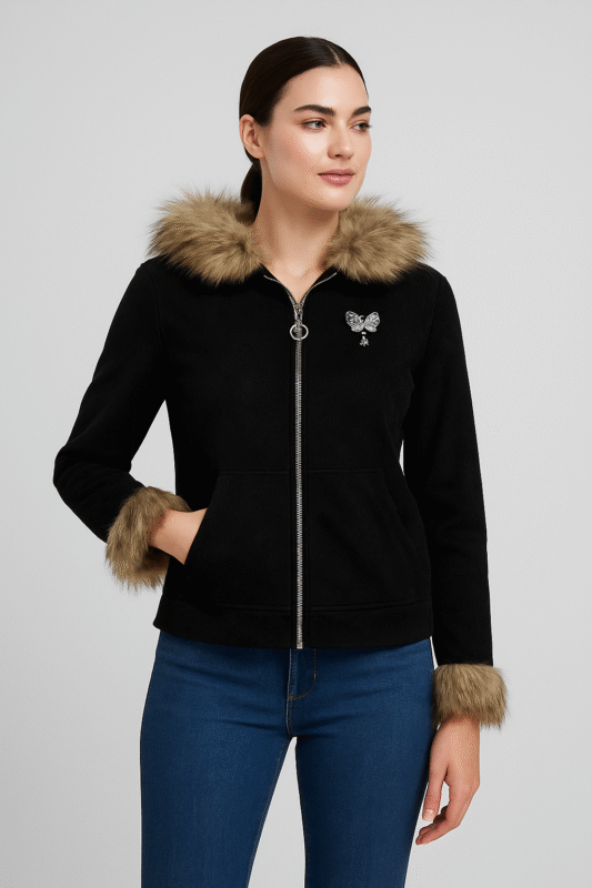 Women’s Black Winter Jacket with Faux