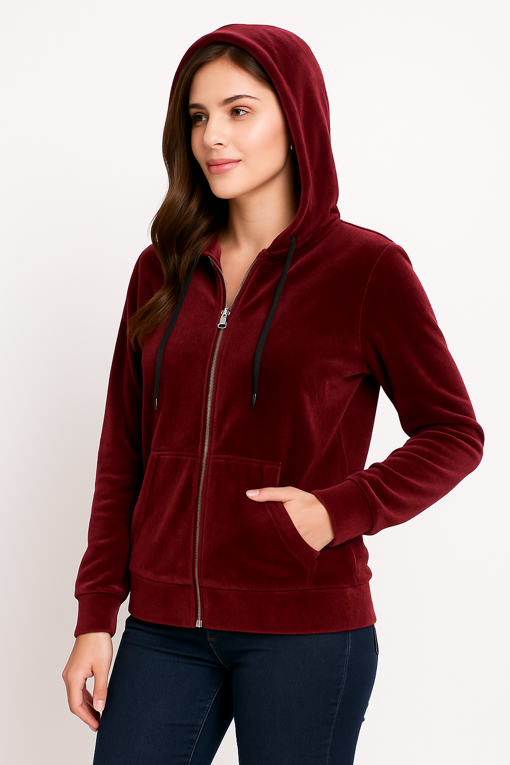 Stay comfortable and fashionable all winter long with this cozy  Zip-Front Hoodie for women. Designed to keep you warm while offering a relaxed and casual look, this hoodie is made from soft fleece fabric that feels gentle on the skin and offers insulation from chilly weather.