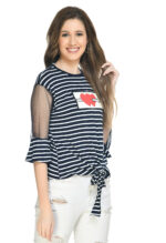 Mint Green Graphic Printed Crop Shirt with Lace Hem by Fe Fashion