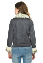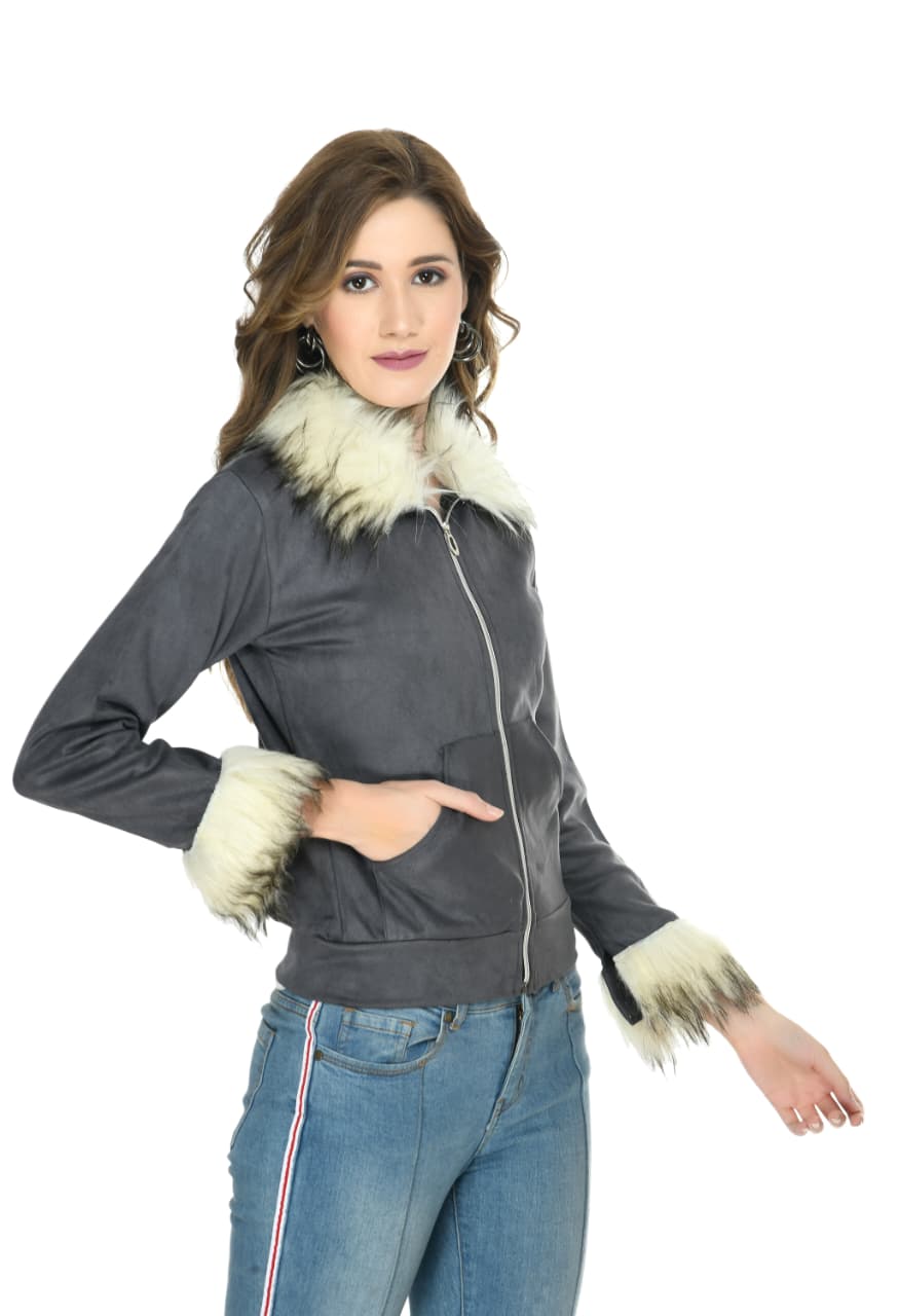 Grey Winter Jacket for Women with Faux Fur