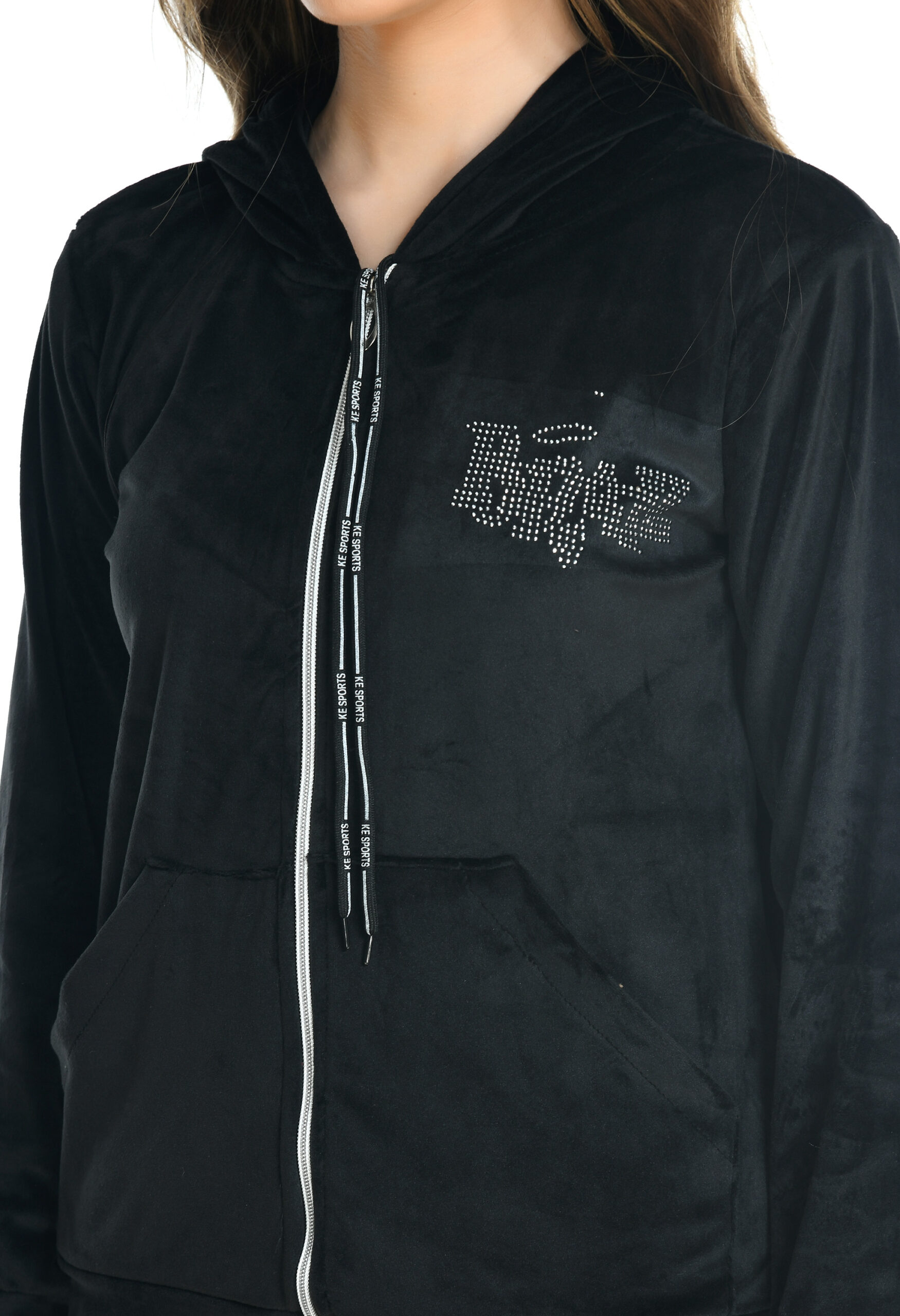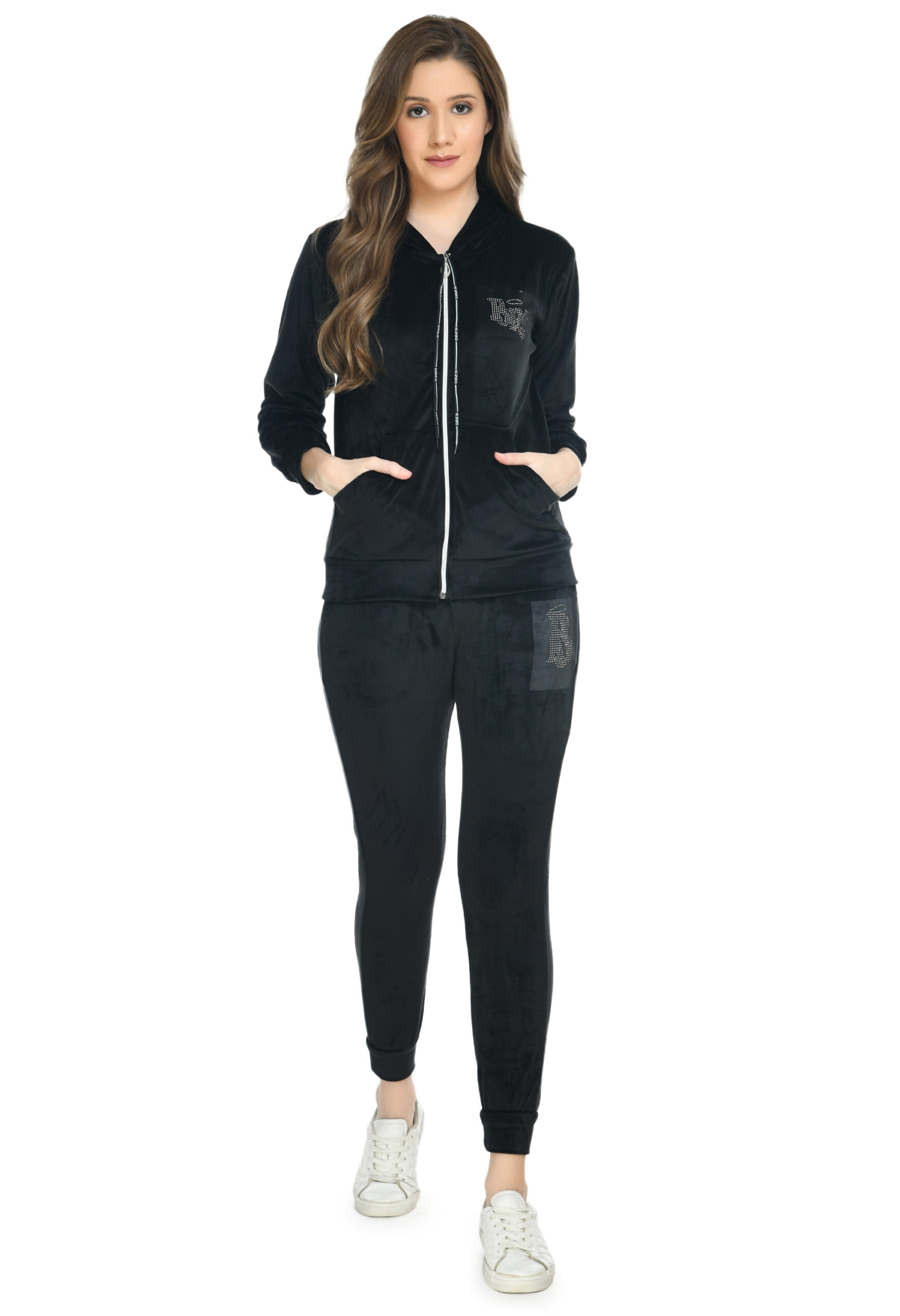 Black Velvet Fleece Winter Co-ord Set – Women’s Stylish Hoodie and Joggers