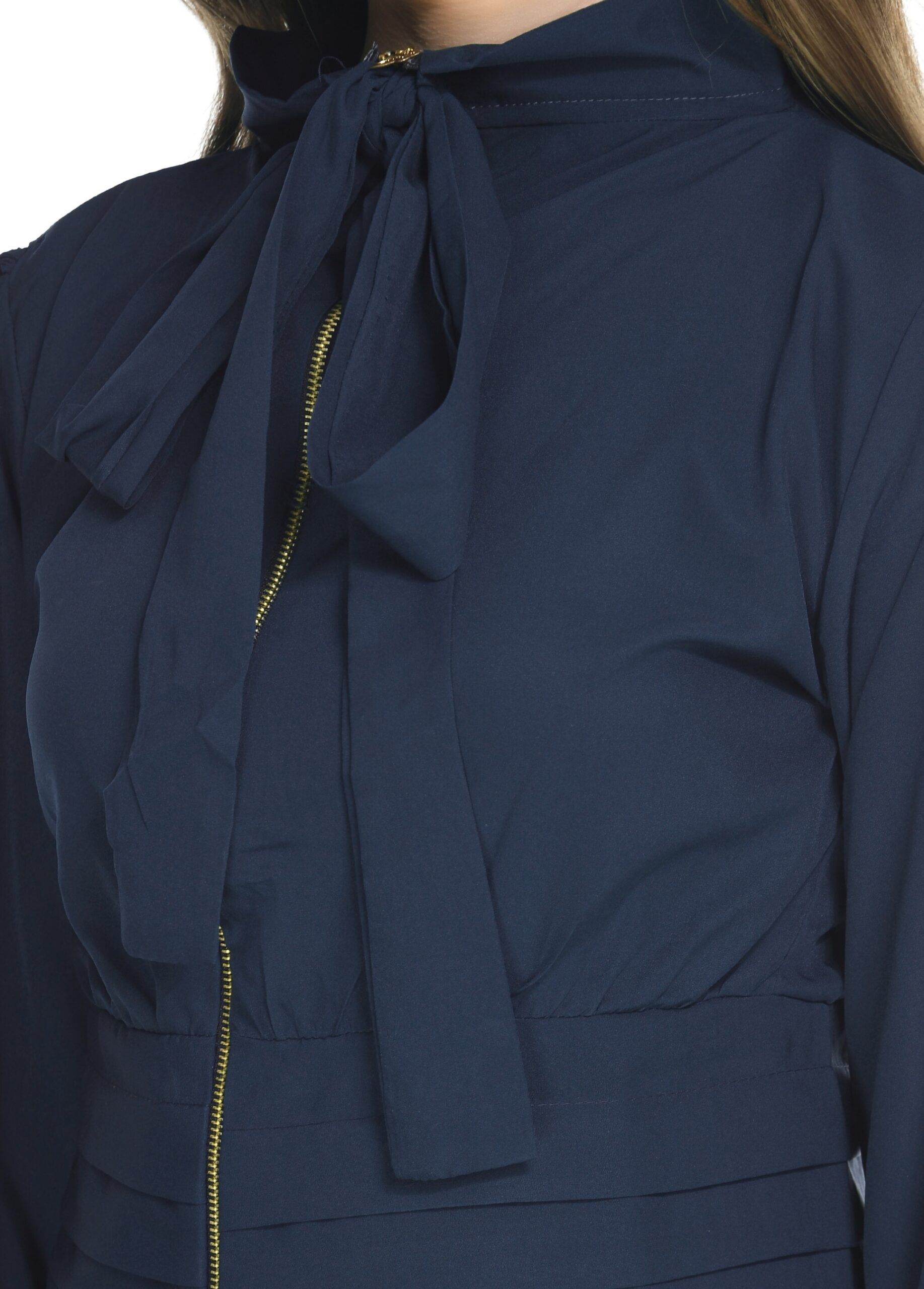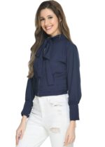 This Stylish Navy Blue Bow Neck Zip Front Top for Women is the perfect blend of elegance, modern charm, and everyday comfort. Designed to give you a fashionable yet graceful look, this top is a must-have addition to every woman’s western wear collection. The navy blue color adds a touch of sophistication and versatility, making it ideal for office wear, casual outings, college looks, dinner dates, or even party events when styled with the right accessories. Crafted with premium-quality fabric, this top is not just about looks—it promises durability, breathability, and a flattering fit that complements all body shapes.