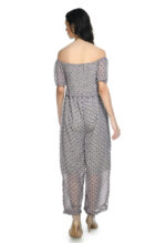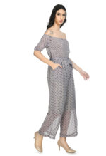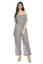 Turn heads with this beautifully designed off-shoulder floral jumpsuit made for women who love to blend comfort with effortless style. This lightweight georgette piece comes with a smocked bodice that hugs your upper body perfectly while offering stretch and flexibility.